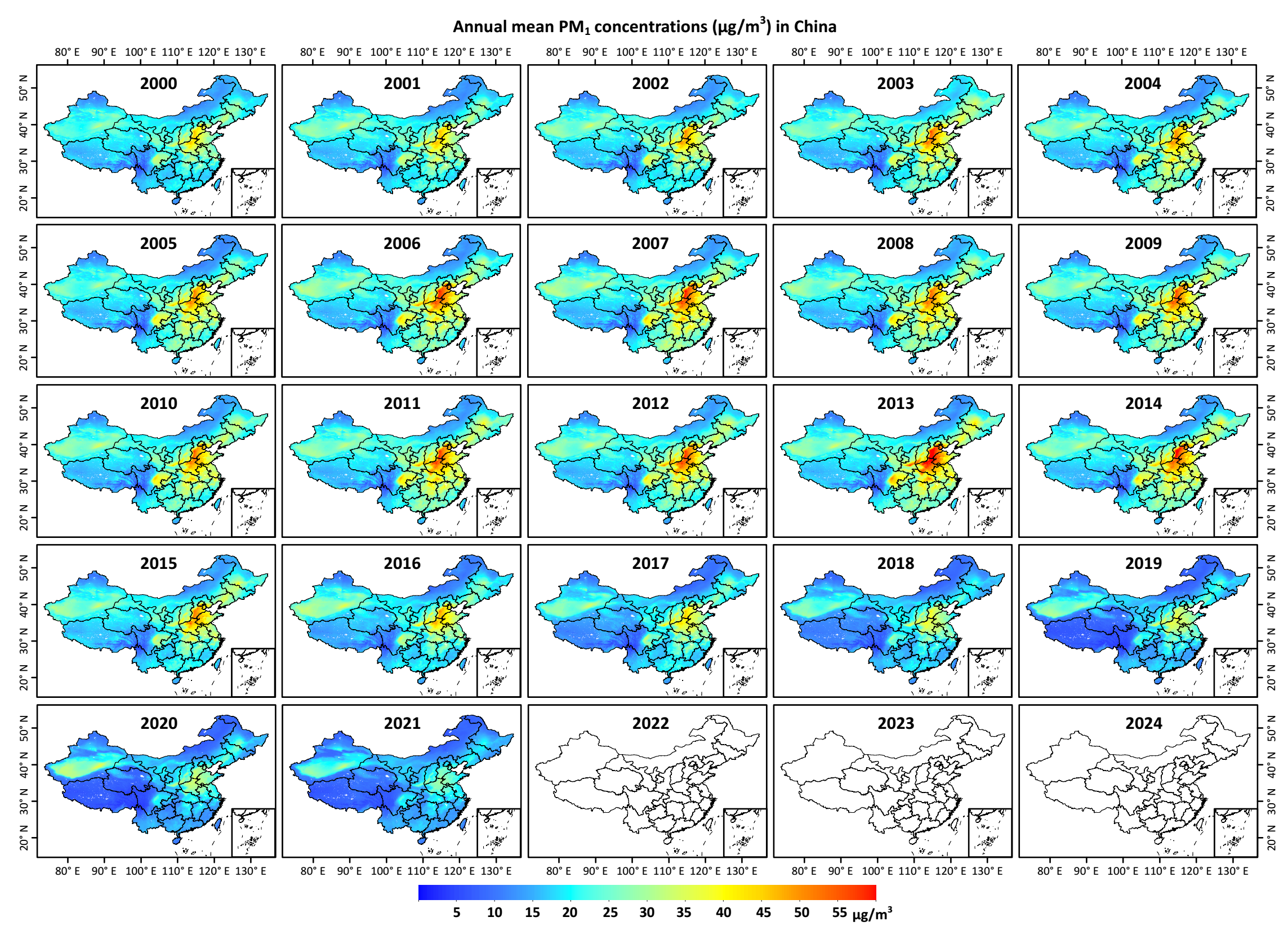Reference: Wei, J., Li, Z., Guo, J., Sun, L., Huang, W., Xue, W., Fan, T, and Cribb, M. Satellite-derived 1-km-resolution PM1 concentrations from 2014 to 2018 across China. Environmental Science & Technology, 2019, 53(22), 13265-13274. https://doi.org/10.1021/acs.est.9b03258 (ESI Hot and Highly Cited Paper)