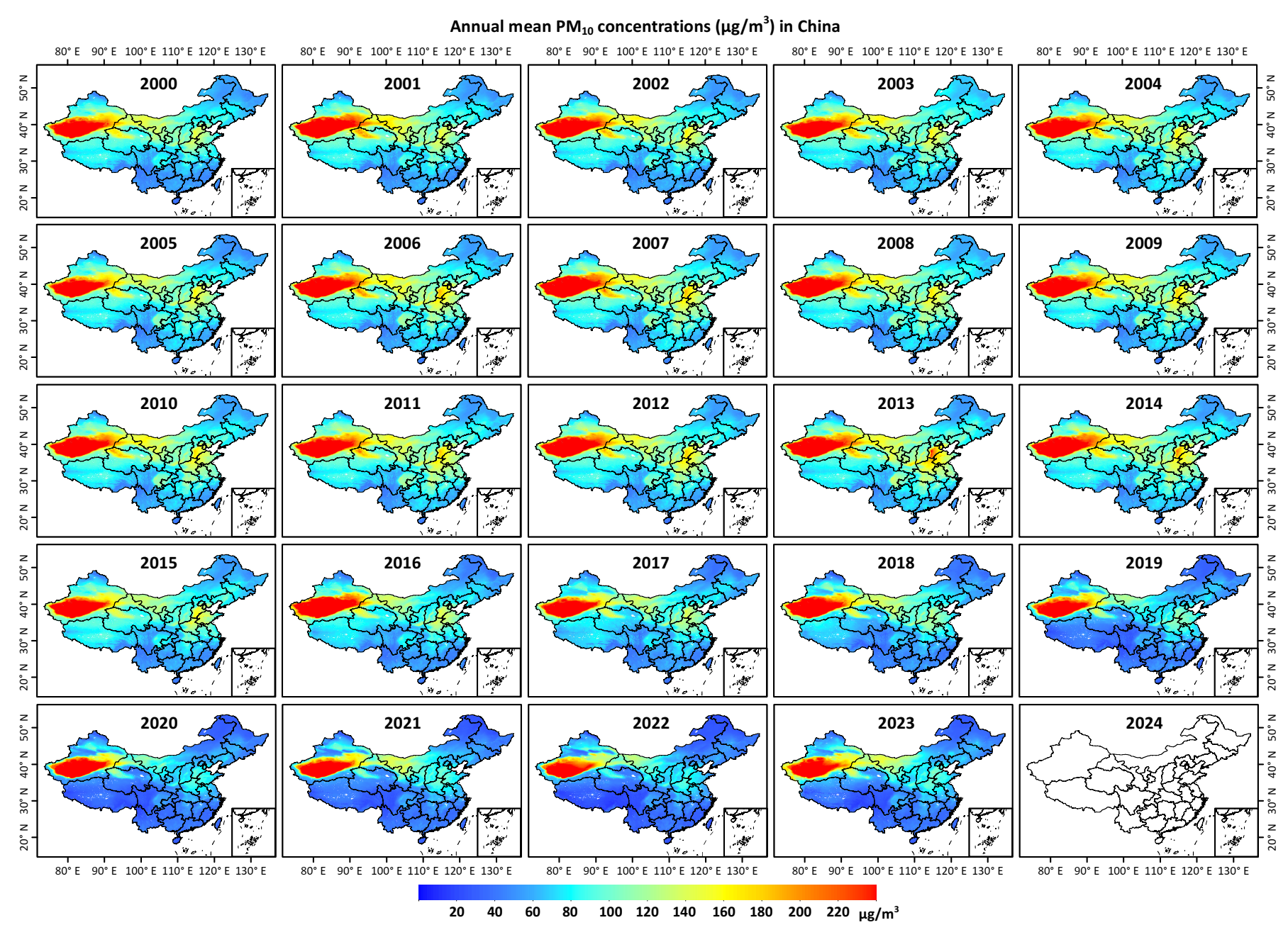 Reference: Wei, J., Li, Z., Xue, W., Sun, L., Fan, T., Liu, L., Su, T., and Cribb, M. The ChinaHighPM10 dataset: generation, validation, and spatiotemporal variations from 2013 to 2019 across China. Environment International, 2021, 146, 106290. https://doi.org/10.1016/j.envint.2020.106290 (ESI Highly Cited Paper)