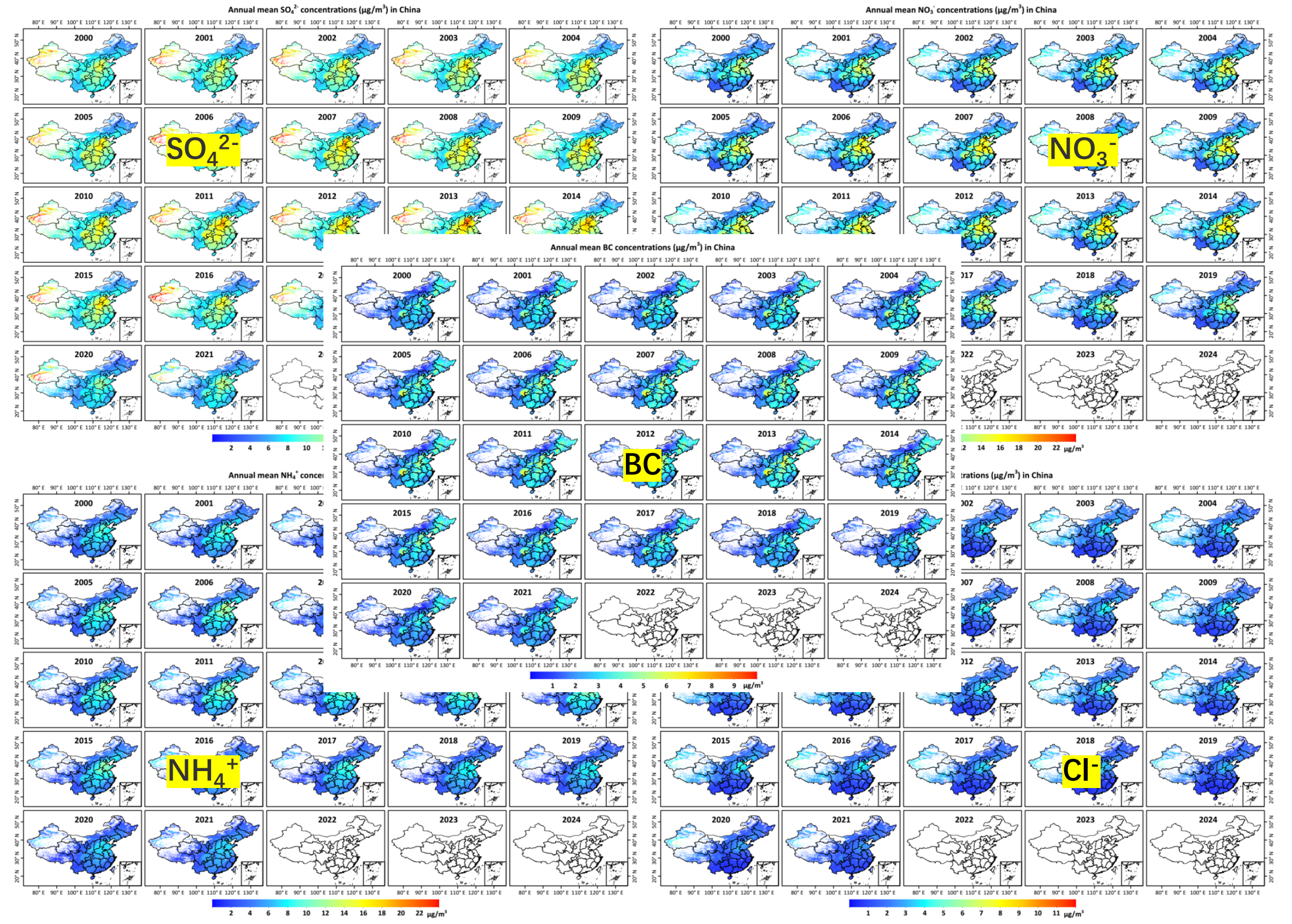 Reference: Wei, J., Li, Z., Chen, X., Li, C., Sun, Y., Wang, J., Lyapustin, A., Brasseur, G., Jiang, M., Sun, L., Wang, T., Jung, C., Qiu, B., Fang, C., Liu, X., Hao, J., Wang, Y., Zhan, M., Song, X., and Liu, Y. Separating daily 1 km PM2.5 inorganic chemical composition in China since 2000 via deep learning integrating ground, satellite, and model data. Environmental Science & Technology, 2023, 57(46), 18282–18295. https://doi.org/10.1021/acs.est.3c00272 (ESI Highly Cited Paper)
