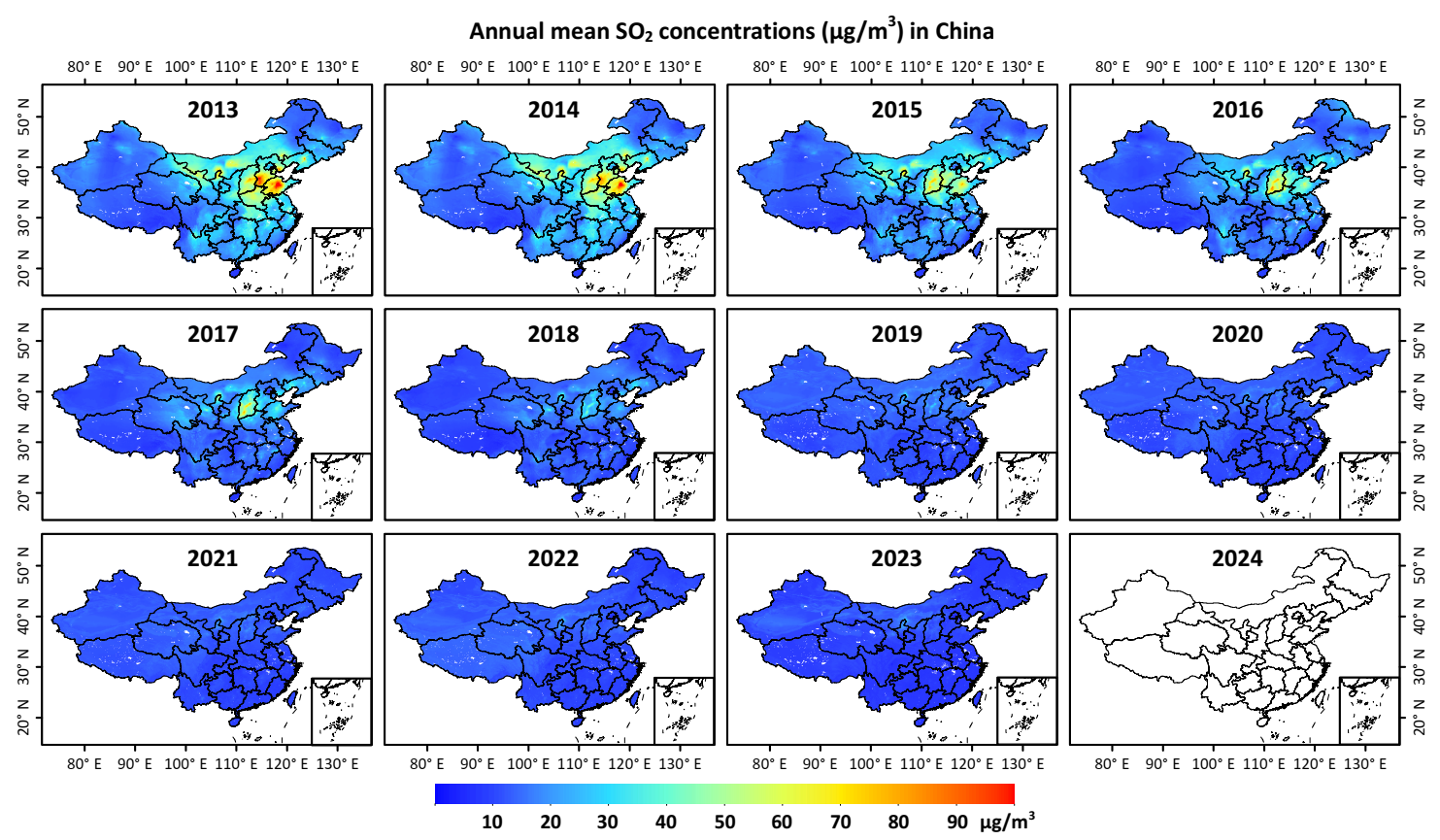Reference: Wei, J., Li, Z., Wang, J., Li, C., Gupta, P., and Cribb, M. Ground-level gaseous pollutants (NO2, SO2, and CO) in China: daily seamless mapping and spatiotemporal variations. Atmospheric Chemistry and Physics, 2023, 23, 1511–1532. https://doi.org/10.5194/acp-23-1511-2023 (ESI Hot and Highly Cited Paper)